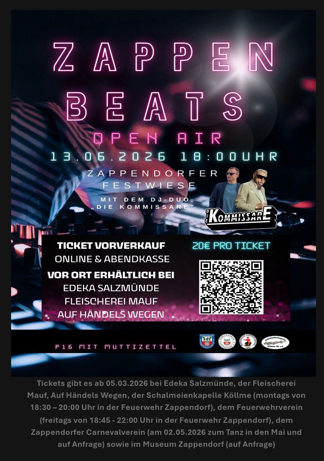 Freiwillige Feuerwehr ZappendorfDie Ortsfeuerwehr Zappendorf und der Feuerwehrverein Zappendorf laden ein zum Osterfeuer am 04.04.2026. Beginn: 16 Uhr Mit Hüpfburg und einer Ostereiersuche Für das leibliche Wohl ist gesorgt.
